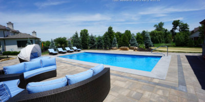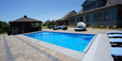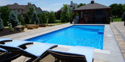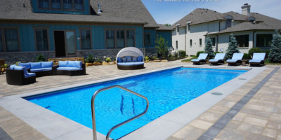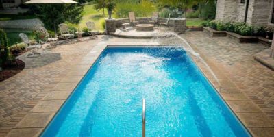 The Diamond color selection sparkles with a light green blue water color that projects a calm and peaceful mood in the fiberglass swimming pool